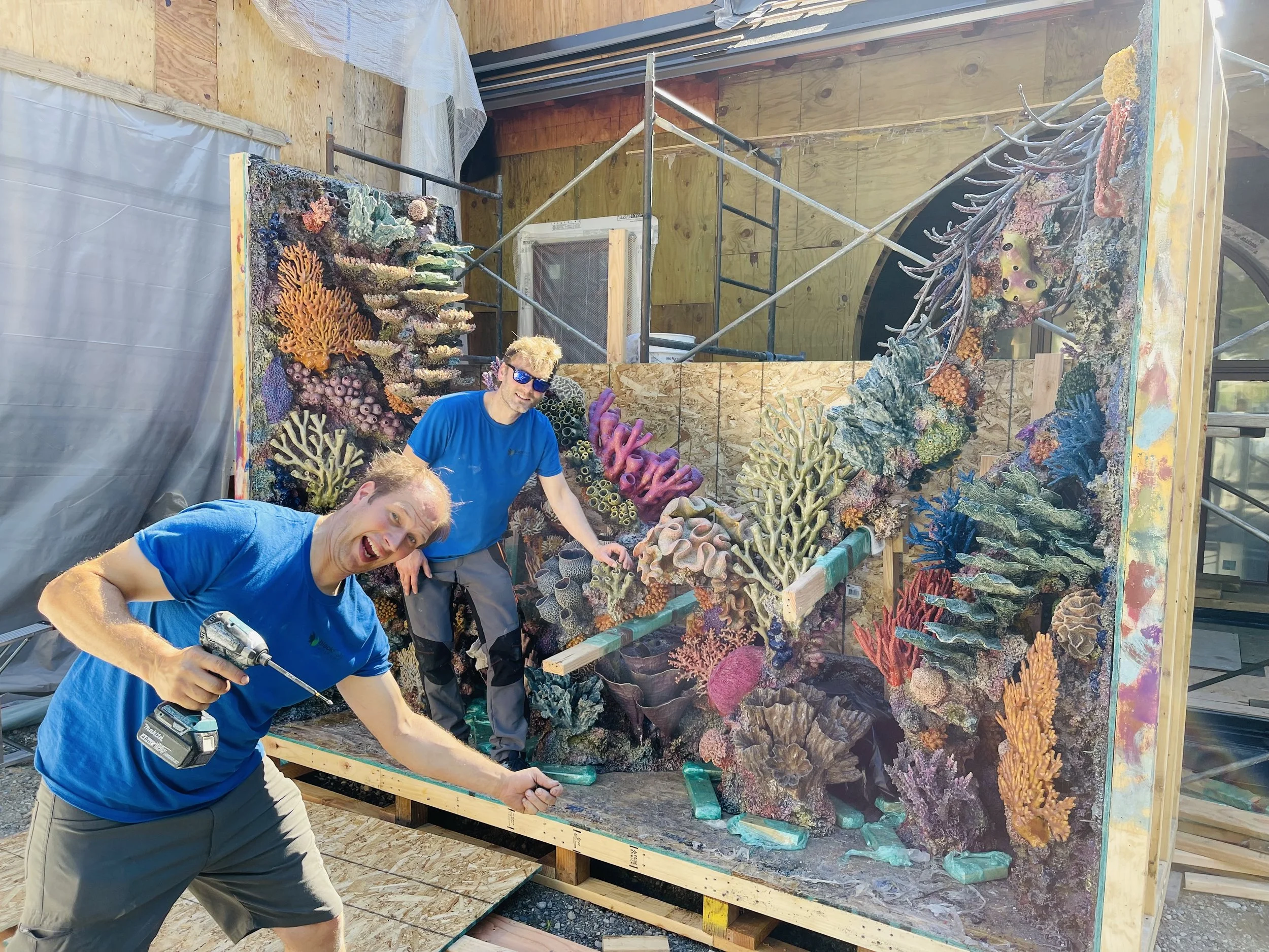 Our second option, and much more economical. We use beautifully colored artificial corals molded off of real corals. The huge advantage of this is the tanks stay cleaner much longer between visits. We are proud to offer the most beautiful 100% artificial sustainable reefs, each one custom made to fit the tank perfectly. As of 2025 we are launching our own line of in house produced artificial corals! This represents the work of over 10 years of experimenting to create the brightest, strongest, most realistic looking corals. A portion of our collection will be for sale on our website soon.