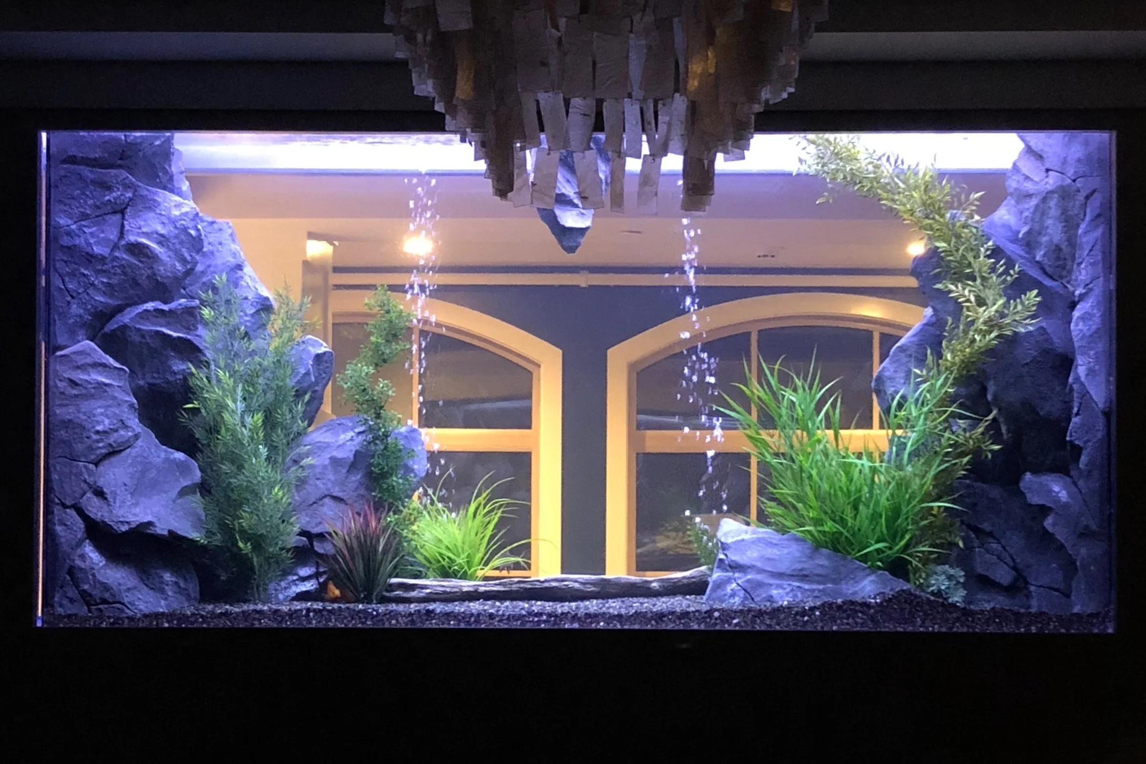 We have a special blend of peaceful colorful fish we like to use together. We combine them with natural rocks and bright green live or artificial plants for a vibe that is relaxing and refreshing! If you are wanting something easy and simple, yet checks all the boxes, our freshwater aquariums fit the bill.